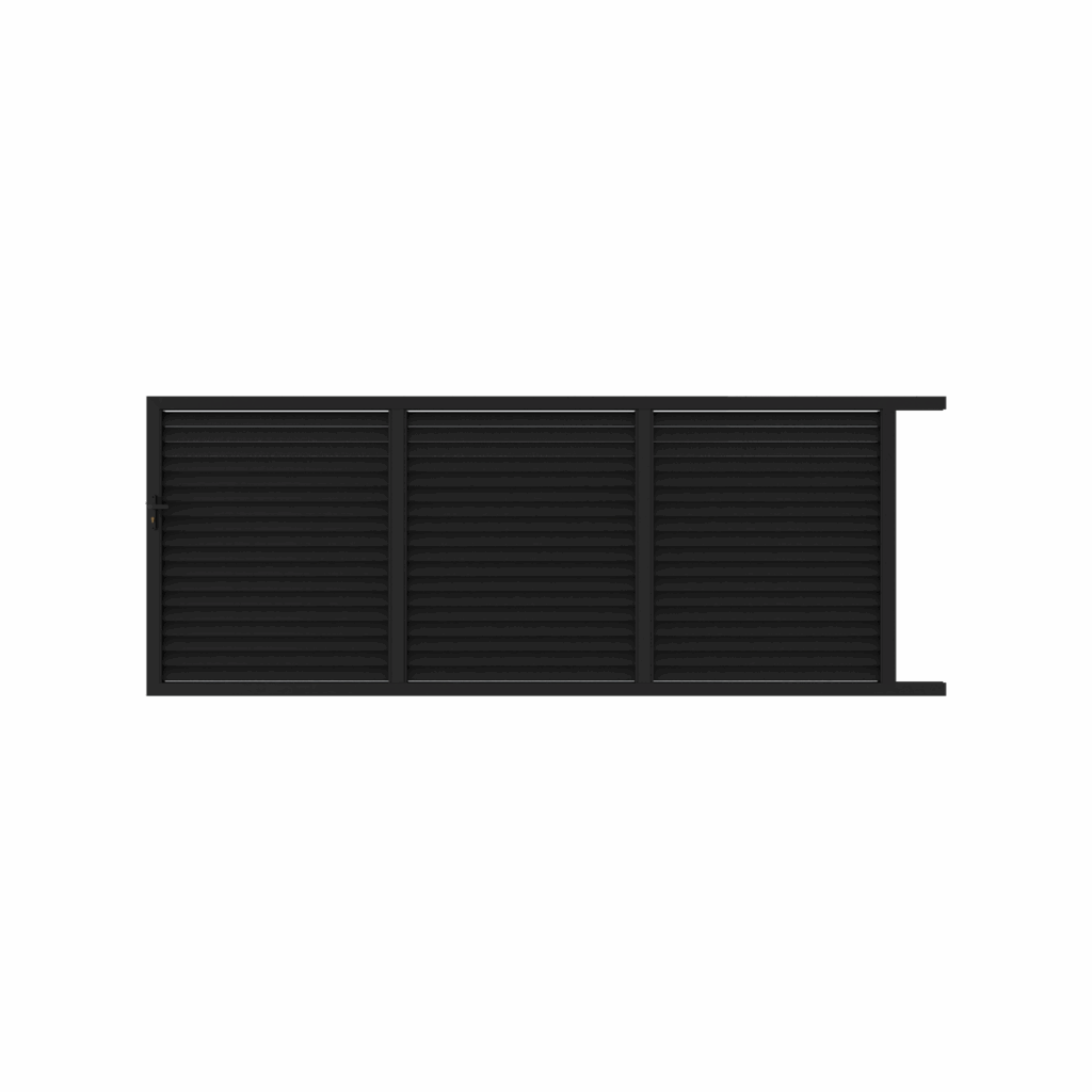 Portail coulissant en aluminium plein. Sécurité, occultation et modernité. Guidage fluide et fermeture robuste. Réalisé sur mesure selon vos dimensions et coloris (noir ou blanc).